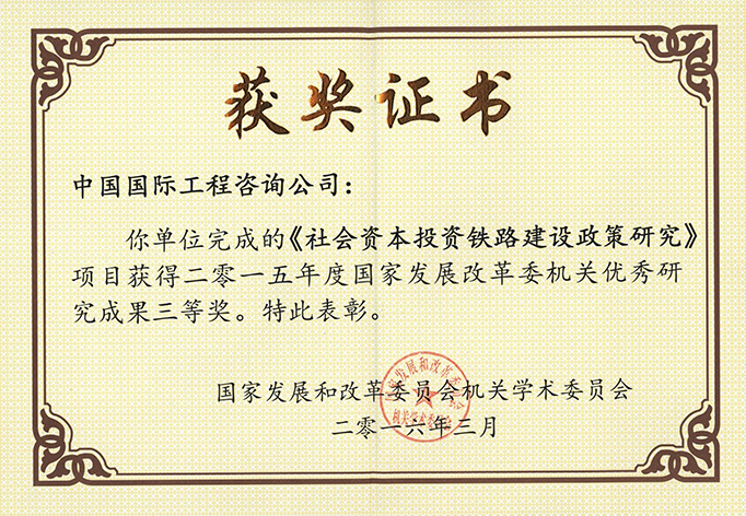 2015年度國家發(fā)展改革委機關優(yōu)秀研究成果三等獎