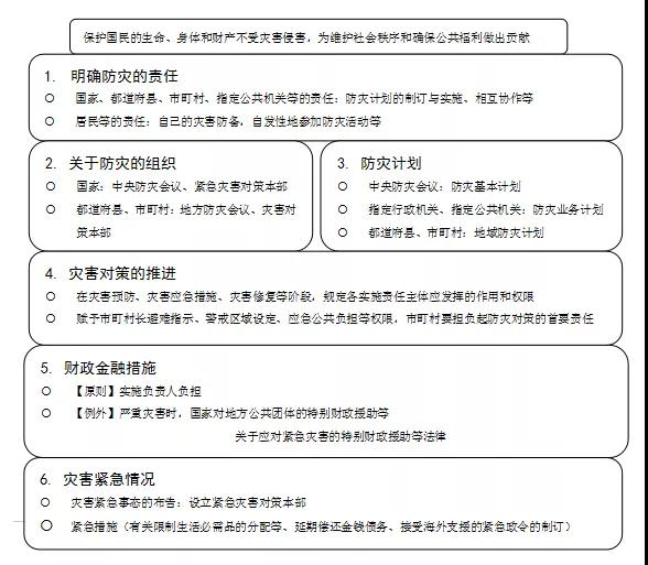 資料來源:日本內(nèi)閣府《防災(zāi)白皮書》。 二 完善且行之有效的防災(zāi)救災(zāi)法律體系 日本有完善的防災(zāi)救災(zāi)法律體系,該法律體系有兩個特點。一是體系健全完善。日本早在1961年就頒布了《災(zāi)害對策基本法》,該法是日本防災(zāi)救災(zāi)的基本大法。依據(jù)《災(zāi)害對策基本法》,日本制訂了涵蓋防災(zāi)規(guī)劃、災(zāi)害緊急應(yīng)對、災(zāi)后重建和復(fù)興、災(zāi)害管理組織等方面的一系列法律法規(guī)體系。各都道府縣及市町村均在此基礎(chǔ)上制訂《防災(zāi)對策基本條例》等地方性法規(guī)。二是法律條款的動態(tài)修訂。日本政府在每次大災(zāi)后都會總結(jié)防災(zāi)救災(zāi)的經(jīng)驗教訓(xùn),并不斷修訂和完善相關(guān)法律條款,補充制訂新的法律法規(guī)。例如,2011年3月11日發(fā)生的東日本9.0級強烈地震,引發(fā)了海嘯、核泄漏等一系列次生災(zāi)害,人員傷亡和經(jīng)濟損失巨大。日本政府組織了跨學(xué)科、多部門參與的調(diào)查委員會和咨詢機構(gòu),對地震前后的國家減災(zāi)政策與措施進行了深入的總結(jié)和反思,分別于2012年6月和2013年6月兩次修訂《災(zāi)害對策基本法》,并通過了《大規(guī)模災(zāi)害復(fù)興法》。