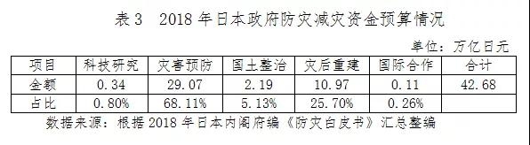 圖1 日本《災(zāi)害對策基本法》概要 依據(jù)《災(zāi)害對策基本法》,日本從中央到地方建立了完善的災(zāi)害應(yīng)對體系,如圖1所示。中央政府在內(nèi)閣府設(shè)置中央防災(zāi)會議,組織制訂《防災(zāi)基本規(guī)劃》并積極推行防災(zāi)基本規(guī)劃的實施,并負責(zé)協(xié)調(diào)有關(guān)防災(zāi)方面的各中央政府部門之間、中央與地方以及地方公共機關(guān)之間的關(guān)系,協(xié)助地方政府和各行政機關(guān)制訂并實施相關(guān)的地區(qū)防災(zāi)規(guī)劃。《防災(zāi)基本規(guī)劃》是防災(zāi)領(lǐng)域最高層次的規(guī)劃,其中按照災(zāi)害種類分別規(guī)劃,如針對地震的防災(zāi)減災(zāi)制訂了大規(guī)模地震防災(zāi)減災(zāi)對策、城市直下型地震對策、東海地震對策、南海地震對策、近海地震對策等。 正是由于有了一套完善且行之有效的災(zāi)害管理體系和制度,整個日本在發(fā)生重大自然災(zāi)害時,從政府到民間的各項搶險、救災(zāi)及災(zāi)后重建工作都井然有序,災(zāi)民情緒也比較穩(wěn)定。 三 風(fēng)險分散、責(zé)任共擔(dān)的資金保障體系 日本的防災(zāi)減災(zāi)及災(zāi)后重建的資金保障體系成熟完整,包括財政、金融、保險和民間捐贈等方面的資金來源。 一是財政資金渠道和責(zé)任清晰明確。日本實行地方自治,因此在防災(zāi)救災(zāi)體系中無論是行動責(zé)任還是資金責(zé)任都首先由地方政府承擔(dān),中央政府進行各種形式的支持和援助。日本在防災(zāi)減災(zāi)領(lǐng)域的政府資金投入分為科技研究、災(zāi)害預(yù)防、國土整治、災(zāi)后恢復(fù)重建、國際防災(zāi)合作五個類別。這些資金投入責(zé)任分散在政府的各有關(guān)部門,如科技研究主要在文部科學(xué)省,國土整治主要在國土交通省。日本2018年的防災(zāi)減災(zāi)政府投入資金預(yù)算約42.68萬億日元,如表3所示。 地方政府層面則建有復(fù)興基金,每年按照前三年地方普通稅收額平均值的5‰作為災(zāi)害救助基金進行累積,地方政府的財政盈余、投資或貸款的收益、個人捐款等均作為資本金進入。如果發(fā)生巨大災(zāi)害導(dǎo)致災(zāi)后重建資金需求超出防災(zāi)預(yù)算,受災(zāi)當(dāng)?shù)卣梢园l(fā)行專門的災(zāi)后重建債券,中央政府也會向地方政府提供各類長期的重建貸款。 二是較為完備的政策性金融支持,主要體現(xiàn)在支持住房重建和產(chǎn)業(yè)重建兩個方面。日本設(shè)有《受災(zāi)者生活再建支援法》,對于在災(zāi)害中受損的住房修復(fù)與重建,由中央政府和地方政府按1:1的比例分攤進行資金補助,最高可提供300萬日元。此外,還設(shè)有災(zāi)害援助資金貸款、生活福祉資金貸款、母子寡婦資金貸款等賑助貸款,對符合條件的家庭給予一定數(shù)額的10年無息貸款,幫助受災(zāi)家庭恢復(fù)生活。產(chǎn)業(yè)重建方面包括對農(nóng)林漁業(yè)恢復(fù)經(jīng)營提供的貸款支持和對中小企業(yè)恢復(fù)生產(chǎn)提供的貸款支持,利率低于市場利率且期限較長。 三是政府與市場合作、多主體風(fēng)險共擔(dān)的保險體系。日本設(shè)有《地震保險法》,地震保險采用政府與商業(yè)保險公司合作的方式建立。住宅所有人向各財產(chǎn)保險公司購買地震保險,各財產(chǎn)保險公司再就所承保的地震保險業(yè)務(wù),全額向日本再保險株式會社再保;而日本再保險株式會社在扣除政府應(yīng)負擔(dān)的額度和自留額后,將剩余部分全額轉(zhuǎn)再保于各財產(chǎn)保險公司,二者之間形成復(fù)雜的再保與轉(zhuǎn)再保關(guān)系。當(dāng)?shù)卣鸨kU超過日本再保險株式會社的保險責(zé)任時,會社會與政府簽訂地震保險超額的轉(zhuǎn)再保合同,由日本國會承諾在一定的責(zé)任限額內(nèi)由政府擔(dān)保。從上述保險體系可以看出,政府財政支持在地震保險體系中至關(guān)重要。地震一旦發(fā)生,保險主體各自按其責(zé)任范圍進行賠付,在多方分擔(dān)的前提下彌補損失,助力受災(zāi)地區(qū)盡快恢復(fù)生活和社會秩序。 四是民間組織的廣泛參與。日本社會存在大量活躍在防災(zāi)減災(zāi)和災(zāi)后重建各個階段工作的非政府組織,他們的主要工作包括日常運作和災(zāi)害發(fā)生后的專項募集,具有靈活多樣的優(yōu)點。災(zāi)難發(fā)生后,非政府組織可以分擔(dān)不能通過政府統(tǒng)一政策得到充分滿足的各類特殊需要,減輕政府責(zé)任。政府主要通過稅收減免和政府購買服務(wù)的方式對這些非政府組織進行財政支持。 四 深入人心的防災(zāi)減災(zāi)宣傳普及活動 日本政府開展的防災(zāi)減災(zāi)宣傳普及活動十分成功,有許多制度化而又豐富多彩的形式。 一是設(shè)有眾多的防災(zāi)減災(zāi)主題宣傳日。例如,日本規(guī)定每年的9月1日為“防災(zāi)日” , 8月30 日到9月5日為“防災(zāi)周”,在此期間會采取展覽、媒體宣傳、標(biāo)語、講演會、模擬演習(xí)、避難訓(xùn)練等各種形式舉辦宣傳普及活動。 圖2 日本2018年海嘯日宣傳畫 二是在中小學(xué)開展系統(tǒng)實用的防災(zāi)減災(zāi)教育。1995年阪神大地震發(fā)生以后,日本對學(xué)校開展防災(zāi)教育更加重視,政府部門組織編寫防災(zāi)教材分發(fā)給學(xu