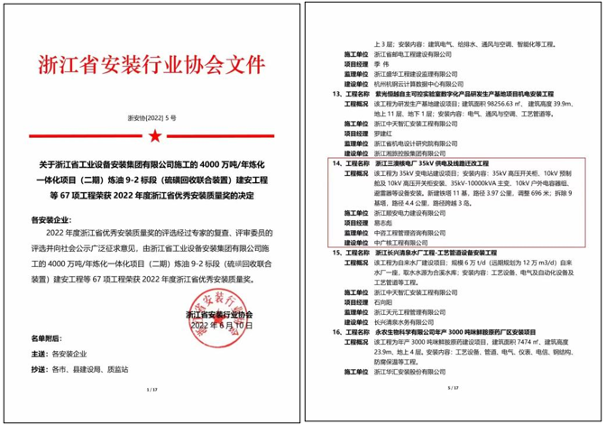 2022年度浙江省優(yōu)秀安裝質(zhì)量獎(jiǎng)