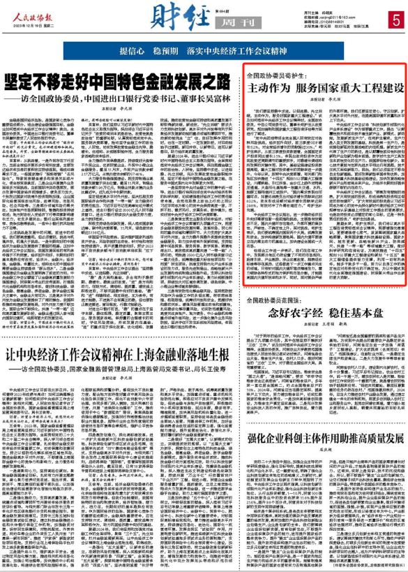 △全國政協(xié)委員,中咨公司黨委書記、董事長茍護生 “黨中央團結帶領全黨全國人民有效應對各種風險挑戰(zhàn),經濟回升向好,前三季度GDP增長5.2%,對全球經濟增長的貢獻超過30%。”茍護生表示,從前三季度投資數據看,全國固定資產投資同比增長3.1%,體現出政府投資作為宏觀政策逆周期調節(jié)的重要抓手,對穩(wěn)增長調結構所發(fā)揮的關鍵作用。其中,基礎設施建設投資數據亮眼,重大工程對投資增長的貢獻率進一步提升。今年以來,按照中央決策部署,有關部門和地區(qū)加快推進“十四五”規(guī)劃102項重大工程建設,川藏鐵路、引江濟淮、金沙江上游外送特高壓通道、大型石化基地等一批重大交通、水利、能源工程相繼開工或投產。“國內需求表現也可圈可點。如最終消費支出對經濟增長貢獻率達到83.2%,資本形成總額對經濟增長貢獻率達到29.8%,有效對沖了外需收縮壓力?!逼堊o生補充道。 中央經濟工作會議指出,進一步推動經濟回升向好需要克服一些困難和挑戰(zhàn),主要是有效需求不足,國內大循環(huán)存在堵點,外部環(huán)境的復雜性、嚴峻性、不確定性上升。面對挑戰(zhàn),茍護生表示,我們要統(tǒng)籌國內國際兩個大局,統(tǒng)籌發(fā)展和安全,加快構建新發(fā)展格局。國內大循環(huán)要建立在內需主動力的基礎上,加快建設全國統(tǒng)一大市場。 他結合工作進一步表示,我們在咨詢工作中,發(fā)現部分地區(qū)仍然設置了不同的市場規(guī)則,招商引資、產業(yè)激勵、涉企優(yōu)惠政策、稅費征收標準等存在差異。這些都是下一步工作重點關注的領域,只有針對國內大循環(huán)堵點精準發(fā)力,著力破除各種形式的地方保護和市場分割,才能提高國內大循環(huán)效率和水平。同時,面對復雜嚴峻的外部環(huán)境,我們還要堅定信心、守正創(chuàng)新,擴大高水平對外開放,在提高國際循環(huán)質量和水平上下功夫。 中央經濟工作會議將“科技創(chuàng)新引領現代化產業(yè)體系建設”作為首要重點工作,提出“以顛覆性技術和前沿技術催生新產業(yè)、新模式、新動能,發(fā)展新質生產力”。在茍護生看來,生產力是人類文明發(fā)展的基礎,科技是第一生產力,是實施創(chuàng)新驅動發(fā)展戰(zhàn)略的內在機理。新質生產力代表了生產力的躍遷,是以顛覆性前沿性科技創(chuàng)新和產業(yè)創(chuàng)新為根本前提,數字時代生產工具發(fā)生本質性變化的生產力。我國原創(chuàng)性創(chuàng)新少,核心技術掌控與世界先進水平相比仍有差距,技術交流又面臨新阻力。因此,我們必須堅定不移走自主創(chuàng)新道路,更好發(fā)揮新型舉國體制優(yōu)勢,加強國家重大科技基礎設施建設,加快發(fā)展戰(zhàn)略性新興產業(yè)和培育未來產業(yè),為經濟長期向好提供源源不斷的內在動力。 中央經濟工作會議提出“要激發(fā)有潛能的消費,擴大有效益的投資,形成消費和投資相互促進的良性循環(huán)”?!皵U大有效益的投資是以習近平同志為核心的黨中央深化新時代做好經濟工作的規(guī)律性認識基礎上對投資工作提出的更高要求,也是政府投資必須錨定的核心目標,這是一種負責任的投資?!逼堊o生如是說。 展望未來,茍護生表示,我們將以高水平工程咨詢貫徹落實會議精神,既要增強憂患意識,更要增強信心底氣,緊緊圍繞國家重大戰(zhàn)略部署,聚焦國家重大科技基礎設施、國家水網、城市更新、戰(zhàn)略性新興產業(yè)、防洪減災、共建“一帶一路”等領域重大工程,做好科學研究和咨詢論證,為高效推進“十四五”規(guī)劃102項重大工程建設和謀劃“十五五”重大工程儲備提供智力支撐,利用一切有利條件,能多干就多干一些,努力以自身工作的確定性應對形勢變化的不確定性,為以中國式現代化全面推進強國建設、民族復興偉業(yè)作出新的更大貢獻。 來源:《人民政協(xié)報》(2023年12月19日第05版) | |||||