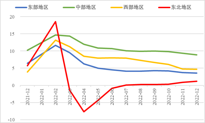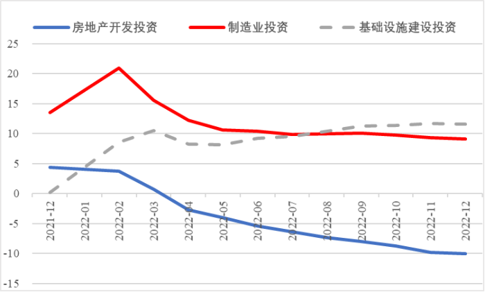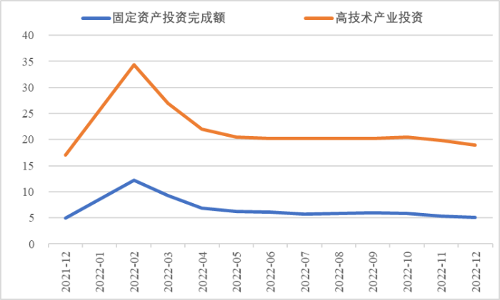 2022年,面對復雜嚴峻的國際環(huán)境和國內(nèi)疫情挑戰(zhàn),我國投資整體表現(xiàn)較強韌性,對穩(wěn)定經(jīng)濟基本盤發(fā)揮了壓艙石作用?;A設施和部分制造業(yè)成為穩(wěn)投資的重點領域,中西部地區(qū)投資增長動能強勁。同時,制造業(yè)承壓加劇、房地產(chǎn)投資下行、地方債高壓、社融需求走弱等突出問題制約投資持續(xù)穩(wěn)定增長,穩(wěn)投資壓力仍然較大。做好2023年投資促進工作,關鍵是把擴大有效投資同優(yōu)化供給結構有機結合起來,持續(xù)擴大高技術產(chǎn)業(yè)投資,多舉措穩(wěn)定房地產(chǎn)投資,更好發(fā)揮政府投資的引導作用,充分釋放社會投資需求潛能。 一、固定資產(chǎn)投資整體運行情況 (一)整體投資韌性超出預期,民間投資呈下行趨勢 2022年1—12月,我國固定資產(chǎn)投資(不含農(nóng)戶,下同)572138億元,同比增長5.1%。一季度投資增速達到9.3%的年內(nèi)高點,上半年、前三季度分別降至6.1%、5.9%,年初投資增速較高的重要原因是2022年專項債部分限額提前下達等系列政策發(fā)揮效果,之后受國外地緣政治沖突、國內(nèi)疫情多點散發(fā)等因素影響,投資增速有所下降,但降幅逐季收窄。一季度、上半年、前三季度、全年固定資產(chǎn)投資增速分別較同期國內(nèi)生產(chǎn)總值增速高了4.5個、3.6個、2.9個和2.1個百分點,投資成為當前穩(wěn)定宏觀經(jīng)濟大盤的關鍵力量。 圖1 全國固定資產(chǎn)投資增速 (累計同比,%) 數(shù)據(jù)來源:國家統(tǒng)計局 1—12月,我國固定資產(chǎn)投資三年平均增速為4.3%,低于2019年同期1.1個百分點,全面恢復到疫情前水平仍需一定時間。尤其是民間投資受疫情沖擊較為嚴重,復蘇難度較大。一季度、上半年、前三季度、全年民間投資分別同比增長8.4%、3.5%、2%、0.9%,低于整體投資增速0.9個、2.6個、3.9個、4.2個百分點,與整體投資增速的差距逐季拉大。從占比看,截至12月底民間投資累計占固定資產(chǎn)投資的比重已降至54.2%,低于2019年同期2.2個百分點。 圖2 民間投資增速及占比(%) 數(shù)據(jù)來源:國家統(tǒng)計局,Wind數(shù)據(jù)庫 (二)基礎設施、制造業(yè)投資支撐作用明顯,房地產(chǎn)市場持續(xù)低迷 制造業(yè)投資在外需帶動和政策支撐下展現(xiàn)較強韌性,2022年1—12月制造業(yè)投資同比增長9.1%,比整體投資高4個百分點。在內(nèi)需受疫情影響明顯收縮的情況下,制造業(yè)投資超預期增長很大程度上得益于外需對出口的拉動。我國全年貨物出口額累計同比增長10.5%,裝備制造、消費品制造等領域海外訂單持續(xù)旺盛,機電產(chǎn)品占進出口總額的49.1%,汽車出口大幅增長82.2%。技改投資繼續(xù)發(fā)揮對制造業(yè)投資的拉動作用。1—11月,制造業(yè)企業(yè)技改投資同比增長9.1%,占全部制造業(yè)投資的比重達40.9%。 基礎設施投資在增加政策性開發(fā)性金融工具額度、用好專項債等融資支持政策以及各地區(qū)各部門積極貫徹落實穩(wěn)增長系列政策推動下,連續(xù)8個月回升,1—12月同比增長9.4%,高于全部投資增速4.3個百分點。其中,水利管理業(yè)投資和公共設施管理業(yè)投資分別大幅增長13.6%、10.1%。 表1 1-12月我國各行業(yè)固定資產(chǎn)投資情況 2022年受需求走弱影響,房地產(chǎn)開發(fā)投資增速持續(xù)放緩,一季度僅同比增長0.7%,二季度開始滑落至負增長區(qū)間。1—12月我國房地產(chǎn)開發(fā)投資同比下降10%,降幅較前三季度、上半年分別擴大2個、4.6個百分點,跌幅持續(xù)加深,拖累固定資產(chǎn)投資整體增長。房企土地購置費、施工面積、新開工面積等指標均出現(xiàn)持續(xù)大幅下降。1—12月,房地產(chǎn)開發(fā)景氣指數(shù)均位于100以下,且自2月以來持續(xù)走低。 圖3 三大領域固定資產(chǎn)投資增速 (累計同比,%) 數(shù)據(jù)來源:國家統(tǒng)計局,Wind數(shù)據(jù)庫 高技術產(chǎn)業(yè)投資引領作用持續(xù)增強。在投資整體下行壓力加大的情況下,高技術產(chǎn)業(yè)投資逆勢而上,穩(wěn)投資引領作用持續(xù)顯現(xiàn)。2022年高技術產(chǎn)業(yè)投資同比增長18.9%,比全部投資增速高13.8個百分點。分類別看,高技術制造業(yè)投資同比增長22.2%,比制造業(yè)整體投資高了13.1個百分點,其中電子及通信設備制造業(yè)投資增長27.2%,醫(yī)療儀器設備及儀器儀表制造業(yè)投資增長27.6%,電子、醫(yī)藥制造業(yè)投資大幅增加;高技術服務業(yè)投資同比增長12.1%,其中科技成果轉化服務業(yè)投資增長26.4%,研發(fā)設計服務業(yè)投資增長19.8%,企業(yè)研發(fā)投入顯著加大。 圖4 高技術產(chǎn)業(yè)投資增速對比整體投資增速 (累計同比,%) 數(shù)據(jù)來源:國家統(tǒng)計局,Wind數(shù)據(jù)庫 (三)中西部地區(qū)投資增長動力較強,東北地區(qū)增速止跌回升 2022年1—12月,東部地區(qū)投資同比增長3.6%,較前三季度、上半年、一季度分別回落0.7個、0.9個、5.9個百分點;中部地區(qū)投資增長8.9%,較前三季度、上半年、一季度分別回落1.1個、1.8個、5.5個百分點;西部地區(qū)投資增長4.7%,較前三季度、上半年、一季度分別回落2個、3.3個、6.6個百分點;東北地區(qū)投資增長1.2%,較前三季度、上半年、一季度分別提升1個、2.1個、2.6個百分點??偟膩砜矗胁亢臀鞑康貐^(qū)投資保持較快增長,東部地區(qū)增速較低,東