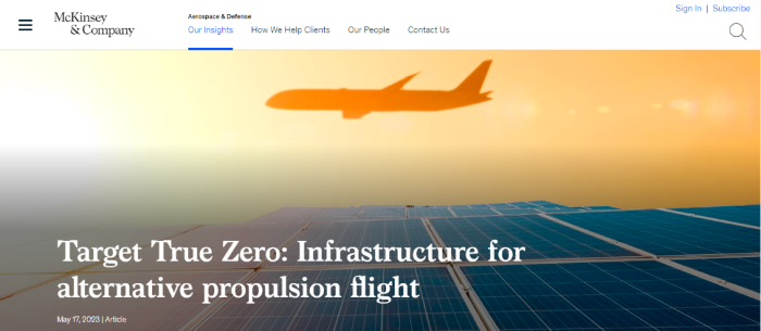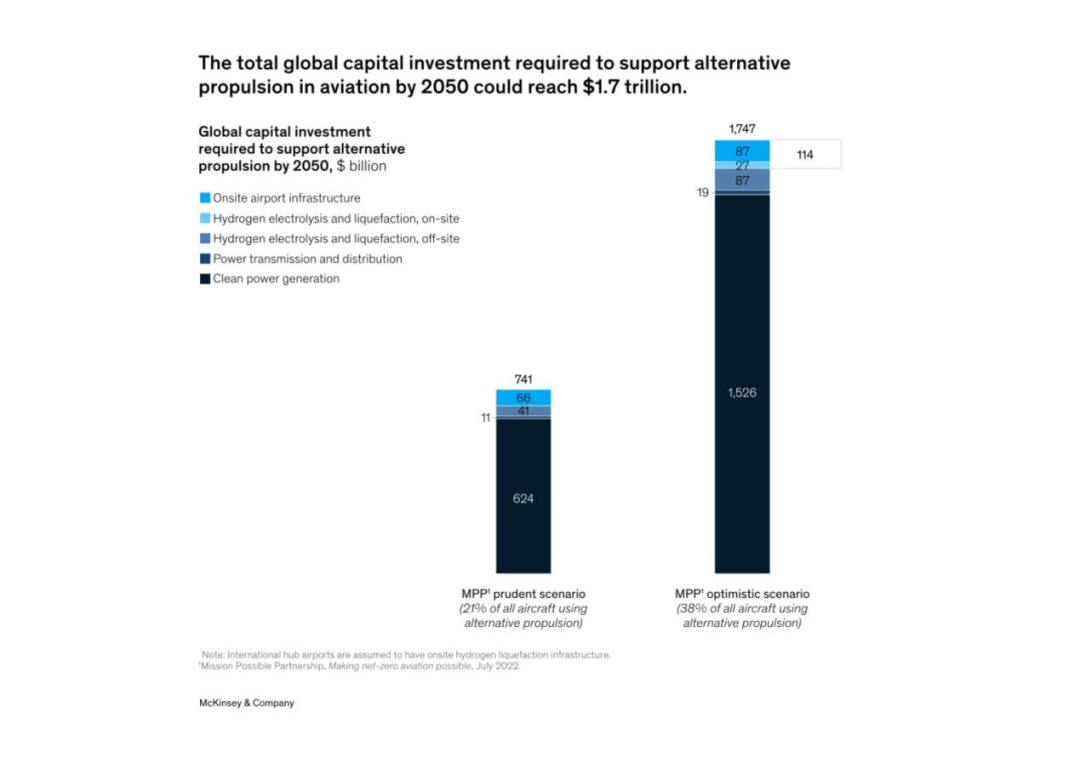 隨著對解決航空業(yè)氣候影響的解決方案的尋求變得更加迫切,人們對例如氫氣、電池電力和混合電力驅動飛機等新型推進技術產生了極大的興趣。根據(jù)MPP對航空業(yè)能源的估計,到2050年,電池電力和氫動力飛機可能占所有飛機的21%-38%,占該行業(yè)整體能源需求的15%-34%。雖然時間上可能感覺很遙遠,但這一新技術將在這十年內出現(xiàn)。 針對這些基礎設施的變化,以及機場和其他利益相關方如何開始準備,仍存在不確定性。近期,麥肯錫發(fā)布了《瞄準低碳:為電池和氫動力飛機提供基礎設施》的報告,旨在幫助人們了解影響新型推進器的一些關鍵考慮因素。