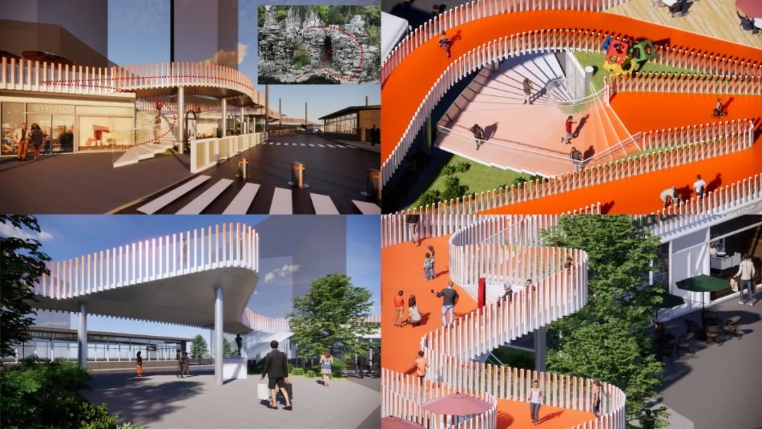 針對(duì)周邊高容積率、生活節(jié)奏快、年輕群體多的特點(diǎn),場(chǎng)站提升更新中結(jié)合慢跑道、屋頂商業(yè)等復(fù)合功能,著力打造若干富有趣味的節(jié)點(diǎn),吸引關(guān)注度: