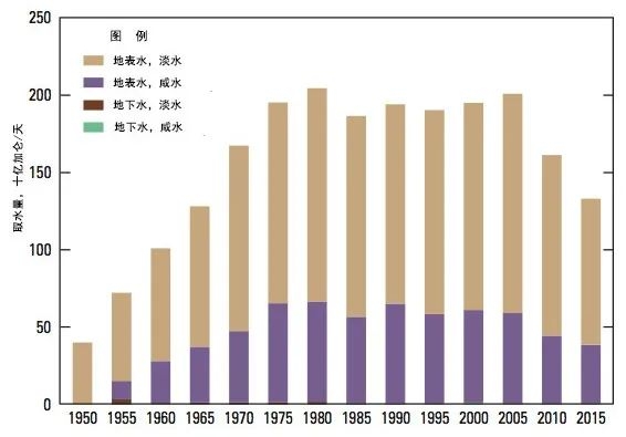 編者按:《2021年聯(lián)合國(guó)世界水發(fā)展報(bào)告》提出,全球新水使用量在過(guò)去100年中增加了6倍,自20世紀(jì)80年代以來(lái)以每年約1%的速度增加。預(yù)計(jì)至2050年全球用水量仍將以類似的速度繼續(xù)增長(zhǎng),且增長(zhǎng)主要集中在中低收入國(guó)家,尤其是新興經(jīng)濟(jì)體[1]。 為進(jìn)一步把握好我國(guó)水資源未來(lái)需求趨勢(shì),我們深入分析研究了一些典型國(guó)家的用水態(tài)勢(shì)變化情況及水資源管理經(jīng)驗(yàn),以期為我國(guó)做好水資源需求研判以及科學(xué)指導(dǎo)水工程規(guī)劃建設(shè)提供參考。本公眾號(hào)將研究成果以系列文章的方式陸續(xù)刊發(fā),本文為系列研究之一,供業(yè)界同仁參考。 美國(guó)用水變化態(tài)勢(shì)對(duì)我國(guó)的啟示 姜富華 邢智慧 紀(jì)興華 一、1950年以來(lái)美國(guó)用水量變化態(tài)勢(shì)分析 (一)1950年以來(lái)美國(guó)用水量變化情況 2015年美國(guó)總用水量約為4449億立方米,其中淡水約為3883億立方米,占比為87%;咸水約為566億立方米,占比為13%。 從1950年至2015年間美國(guó)總用水量的變化情況看,其總體呈先增后降的態(tài)勢(shì)(見(jiàn)圖1)。以1980年為轉(zhuǎn)折點(diǎn),1950-1980年間美國(guó)總用水量隨著人口和經(jīng)濟(jì)的增長(zhǎng)持續(xù)增長(zhǎng),1980年美國(guó)總用水量約為1950年的2.4倍;1980年以后,受產(chǎn)業(yè)結(jié)構(gòu)調(diào)整、技術(shù)進(jìn)步、用水效率提高等因素綜合影響,美國(guó)總用水量呈現(xiàn)了總體下降的態(tài)勢(shì),2015年總用水量比用水高峰的1980年減少了約25%。 美國(guó)淡水取用量與總用水量變化態(tài)勢(shì)一致(見(jiàn)圖2)。1980-2015年間美國(guó)淡水總用水量下降了27%,此期間美國(guó)人口增長(zhǎng)了約42%,GDP增長(zhǎng)了5倍以上[2]。 數(shù)據(jù)來(lái)源:美國(guó)地質(zhì)調(diào)查局統(tǒng)計(jì)。 注:①不同時(shí)段取水量統(tǒng)計(jì)口徑略有差異;②取水量等于毛用水量。 圖1 1950-2015年美國(guó)總?cè)∮盟考胺诸惾∮盟孔兓瘧B(tài)勢(shì) 數(shù)據(jù)來(lái)源:美國(guó)地質(zhì)調(diào)查局統(tǒng)計(jì)。 圖2 1950-2015年美國(guó)淡水取用水量與人口變化態(tài)勢(shì) 有研究[3]繪制了以1950年為基準(zhǔn),至2010年美國(guó)GDP與用水量間的關(guān)系變化情況圖(見(jiàn)圖3)。藍(lán)色線為實(shí)際GDP變化,橙色線為實(shí)際用水量變化,灰色線為考慮產(chǎn)業(yè)結(jié)構(gòu)變化、不考慮技術(shù)改進(jìn)情況下的預(yù)測(cè)用水變化。藍(lán)色線與橙色線的剪刀走向表明:早在1980年,美國(guó)用水量已與GDP脫鉤。藍(lán)色線與灰色線、灰色線與橙色線的剪刀走向表明:導(dǎo)致脫鉤的重要因素是用水效率提升和經(jīng)濟(jì)結(jié)構(gòu)變化。 數(shù)據(jù)來(lái)源:數(shù)據(jù)來(lái)自[3];1950=1 圖3 1950-2010年美國(guó)總用水量與經(jīng)濟(jì)變化關(guān)系分析 (二)主要行業(yè)用水量變化情況 美國(guó)用水類別中,熱電、灌溉、公共和自供工業(yè)用水量是排在前4名的用水戶,其用水總量占美國(guó)總用水量的比重超過(guò)90%,見(jiàn)圖4。本文重點(diǎn)分析多年來(lái)美國(guó)熱電、灌溉、公共和自供工業(yè)用水的變化情況。 數(shù)據(jù)來(lái)源:美國(guó)地質(zhì)調(diào)查局。 圖4 2015年美國(guó)分類取用水量統(tǒng)計(jì) 1.熱電用水變化態(tài)勢(shì) 熱電是美國(guó)最大的用水對(duì)象。2015年美國(guó)熱電用水量約為1838億立方米,占總用水量的41%左右,見(jiàn)圖5。美國(guó)熱電用水基本來(lái)自地表水,且以淡水為主。2015年美國(guó)熱電用水量比2010年降低18%左右,用水效率由2010年的71.9升/千瓦時(shí)降低到2015年的56.8升/千瓦時(shí)。 數(shù)據(jù)來(lái)源:美國(guó)地質(zhì)調(diào)查局。 圖5 1950-2015年美國(guó)熱電用水量變化態(tài)勢(shì) 2.灌溉用水變化態(tài)勢(shì) 美國(guó)灌溉用水量占總用水量的40%左右,僅次于熱電用水。2015年美國(guó)灌溉面積超過(guò)3.5億畝,其中噴灌、微灌面積比重分別為55%和8.6%左右,灌溉總用水量約為1630億立方米(占總用水量的37%左右),地表和地下水源灌溉供水比重分別為52%和48%。由于降雨豐枯變化,美國(guó)灌溉水量年際間有波動(dòng),但從大的變化趨勢(shì)看,1980年以來(lái)總體呈下降趨勢(shì),2015年灌溉水量比1980年減少了21%,見(jiàn)圖6。 數(shù)據(jù)來(lái)源:美國(guó)地質(zhì)調(diào)查局。 圖6 1950-2015年美國(guó)灌溉用水量變化態(tài)勢(shì) 灌溉用水受水資源條件、灌溉面積、種植結(jié)構(gòu)、灌溉設(shè)施、灌溉效率等多種因素影響。據(jù)美國(guó)農(nóng)業(yè)部統(tǒng)計(jì),美國(guó)灌溉面積快速增長(zhǎng),從1890年的不足1821萬(wàn)畝增長(zhǎng)到2017年的3.52億畝左右,見(jiàn)圖7。但與此同時(shí),實(shí)際灌溉用水強(qiáng)度有所下降,1969-2017年單位面積平均灌溉水量從406立方米/畝下降至304立方米/畝,這是農(nóng)業(yè)種植模式調(diào)整、灌溉設(shè)施與技術(shù)采用和灌溉效率提高等綜合作用的結(jié)果。 數(shù)據(jù)來(lái)源:美國(guó)農(nóng)業(yè)部。 圖7 1890-2018年美國(guó)灌溉面積和單位面積灌溉用水量變化態(tài)勢(shì) 美國(guó)灌溉用水結(jié)構(gòu)不斷變化,主要表