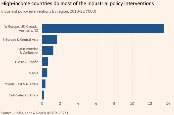 摘要:6月19日,《金融時報》發(fā)布首席經(jīng)濟評論員馬丁·沃爾夫(MARTIN WOLF)撰寫的題為《如何不盲目制定產(chǎn)業(yè)政策》的評論文章,批判了特朗普和拜登政府實施的產(chǎn)業(yè)政策,表示政客們應(yīng)該承認(rèn),在充滿猜疑、保護主義和干涉主義的新時代,可能會損失多少。文章建議,盡管意識形態(tài)向民族主義和干預(yù)主義的根本轉(zhuǎn)變很難遏制,但是實施產(chǎn)業(yè)政策最明智的方式是盡可能精準(zhǔn)地針對已發(fā)現(xiàn)的問題,同時盡量減少對國際合作、貿(mào)易開放和國內(nèi)經(jīng)濟表現(xiàn)的破壞性副作用。 產(chǎn)業(yè)政策再次成為政府干預(yù)的強大動力。世界許多地方都是如此。但最引人注目的轉(zhuǎn)變發(fā)生在美國。羅納德·里根宣稱: “英語中最可怕的九個字是:我是政府派來的,我來幫忙?!比缃?,拜登政府正在熱情地“提供幫助”。唐納德·特朗普也是一個干涉主義者,不同之處在于,他的幫助方式是提高關(guān)稅。鑒于美國歷史上作為開放世界經(jīng)濟的倡導(dǎo)者的角色,這種轉(zhuǎn)變意義重大。 有證據(jù)表明,產(chǎn)業(yè)政策作為一種理念和實踐都變得更加普遍。國際貨幣基金組織去年 1 月發(fā)布的《產(chǎn)業(yè)政策回歸數(shù)據(jù)》顯示,過去十年,商業(yè)媒體中對產(chǎn)業(yè)政策的提及顯著增加。美國國家經(jīng)濟研究局發(fā)表的一篇關(guān)于《產(chǎn)業(yè)政策的新經(jīng)濟學(xué)》的論文由雷卡·尤哈斯、內(nèi)森·萊恩和丹尼·羅德里克共同撰寫,論文顯示,全球產(chǎn)業(yè)政策干預(yù)措施急劇增加,從2017年的228項增加到2022年的1568項——主要是在高收入國家(可能是因為它們有更多的財政空間)。這也讓世界其他國家指責(zé)它們虛偽。(見圖1) 圖1 產(chǎn)業(yè)政策的重要性急劇上升 經(jīng)濟學(xué)家認(rèn)為,這種干預(yù)有三個合理理由。第一個理由涉及“外部性”,即企業(yè)提供的無償利益。最明顯的外部性來自工人和其他企業(yè)從中學(xué)到的東西。此外還存在國家安全和其他社會外部性。第二個理由涉及協(xié)調(diào)和集聚失?。阂虼?,如果多家企業(yè)聯(lián)合起來創(chuàng)業(yè),它們可能會生存下來,但如果單獨創(chuàng)業(yè),可能沒有一家企業(yè)能夠生存下去。最后一個理由涉及公共產(chǎn)品的供應(yīng),尤其是特定地點的公共產(chǎn)品,如基礎(chǔ)設(shè)施。請注意,至關(guān)重要的是,這些都不是保護的理由。正如我上周指出的那樣,保護不是實現(xiàn)這些更廣泛的社會目標(biāo)的糟糕方式。 如果產(chǎn)業(yè)政策能夠?qū)⒔?jīng)濟結(jié)構(gòu)朝著有利的方向改變,那么它就是有效的。不幸的是,這種嘗試可能會失敗,原因眾所周知。缺乏信息是其中之一。被一系列特殊利益集團控制是另一個原因。因此,政府可能無法挑選出贏家,而輸家卻可能成功挑選出政府。擺在桌面上的錢越多,后者就越有可能成真。 圖2 實施產(chǎn)業(yè)政策依據(jù)不同的理由 然而,產(chǎn)業(yè)政策是可以奏效的。在2021年彼得森國際經(jīng)濟研究所的一份出版物中,加里·赫夫鮑爾 (Gary Hufbauer) 和 鄭惠珍(音譯)(Euijin Jung)認(rèn)為“最突出的成功是美國技術(shù)資助機構(gòu) DARPA”。因此,成功的創(chuàng)新政策是可能的?;诘攸c的區(qū)域政策有時也奏效。 但失敗并不是唯一的風(fēng)險,成功也是如此。產(chǎn)業(yè)政策有可能引發(fā)國際報復(fù)。韓國利用保護國內(nèi)市場作為補貼出口的間接方式,從而創(chuàng)造了成功的新產(chǎn)業(yè)。但它是一個受美國保護的小國。對于大國來說,必須考慮國際影響。美國和歐盟近期針對中國清潔能源技術(shù)的快速發(fā)展出臺了系列加稅制裁和反補貼政策,對經(jīng)濟超級大國之間的關(guān)系造成了不利影響。 圖3 產(chǎn)業(yè)政策影響一系列關(guān)鍵技術(shù)和行業(yè)部門 如今,最引人注目的新產(chǎn)業(yè)政策是拜登政府的產(chǎn)業(yè)政策。德克薩斯大學(xué)奧斯汀分校的激進經(jīng)濟學(xué)家詹姆斯·K·加爾布雷斯在分析中指出,“幾十年來,美國首次擁有了一項看似合理的產(chǎn)業(yè)政策模擬”。但這不是真的:因此,“美國政府已經(jīng)失去了在技術(shù)和相關(guān)科學(xué)前沿集中果斷努力的能力”。拜登的《通脹削減法案》有多個目標(biāo),從促進本地制造到降低排放。這是有問題的。加爾布雷斯希望美國變得更激進地干預(yù)。如果美國要干預(yù),就必須更具戰(zhàn)略性。真的可以嗎? 那么,應(yīng)該如何評價美國產(chǎn)業(yè)政策轉(zhuǎn)變?特朗普右翼勢力又希望恢復(fù)19世紀(jì)末和20世紀(jì)初的高關(guān)稅。 圖4 產(chǎn)業(yè)政策干預(yù)措施數(shù)量呈爆炸式攀升 答案是,現(xiàn)在至少有三種兩黨立場:懷念制造業(yè)、對抗中國崛起、對美國自己制定的國際規(guī)則漠不關(guān)心。這是一個新世界,國際貿(mào)易秩序可能很快就會達到臨界點。實施產(chǎn)業(yè)政策最明智的方式是盡可能精準(zhǔn)地針對已發(fā)現(xiàn)的問題,同時盡量減少對國際合作、貿(mào)易開放和國內(nèi)經(jīng)濟表現(xiàn)的破壞性副作用。遺憾的是,這種情況不太可能會結(jié)束,就像1930年代的情況一樣。正如以前經(jīng)常發(fā)生的那樣,意識形態(tà