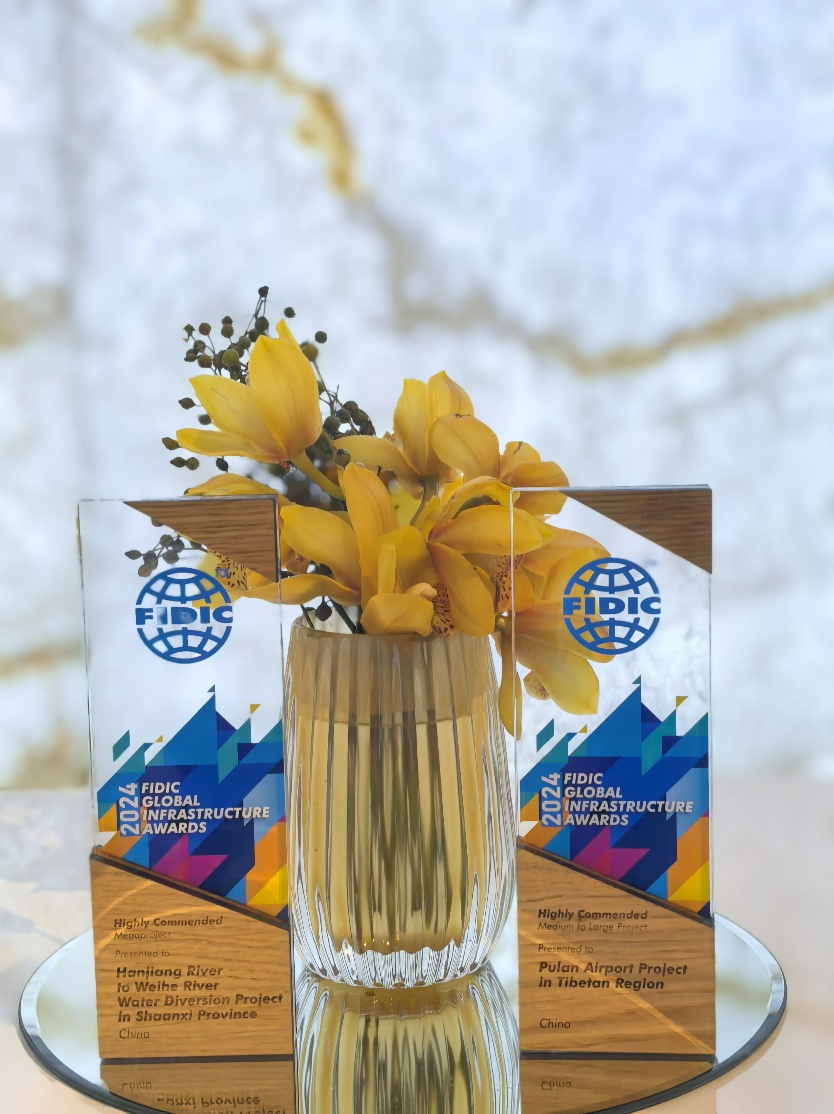 日前,從瑞士日內(nèi)瓦傳來喜訊,中國國際工程咨詢有限公司(以下簡稱中咨公司)聯(lián)合陜西省水利電力勘測設計研究院、中鐵第一勘察設計院集團有限公司申報的“陜西省引漢濟渭工程”,以及中咨公司與民航機場建設集團西南設計研究院有限公司聯(lián)合申報的“西藏阿里地區(qū)普蘭機場項目”,在2024年度“菲迪克工程項目獎”評選中,雙雙榮獲杰出獎。這也是中咨公司第八次斬獲該項殊榮。 菲迪克(國際咨詢工程師聯(lián)合會,F(xiàn)IDIC)是全球工程咨詢業(yè)的權(quán)威組織,代表該領域最高水平?!胺频峡斯こ添椖开劇彼赜袊H工程界“諾貝爾獎”之稱。 2024年9月8日至10日,國際咨詢工程師聯(lián)合會(FIDIC)全球基礎設施大會在瑞士日內(nèi)瓦舉行。中咨公司黨委書記、董事長茍護生應邀率隊參會。從西氣東輸管道一線工程到500米口徑球面射電望遠鏡,從藏中電力聯(lián)網(wǎng)工程到金沙江白鶴灘水電站……中咨公司在“菲迪克工程項目獎”評選中屢創(chuàng)佳績,這是中國工程、中國標準、中國咨詢走向國際的生動見證。如今,這份榮耀名單上再添新成員——陜西引漢濟渭工程、西藏阿里地區(qū)普蘭機場項目。 中咨公司黨委書記、董事長茍護生及咨詢團隊成員與菲迪克組委會成員合影 中咨公司交通業(yè)務部副主任李孝榮、農(nóng)村經(jīng)濟與地區(qū)業(yè)務部水利處處長劉大慶代表公司上臺領獎 菲迪克主席Catherine Karakatsanis在頒獎致辭中表示,獲獎項目不僅是咨詢工程師優(yōu)異勞動成果的反映,也是他們?yōu)樯鐣?chuàng)造價值的體現(xiàn),有力地表明,工程咨詢在改善和提升人類生活質(zhì)量方面發(fā)揮著極其重要的作用。這也與本次大會的主題——“基礎設施改變生活:投資建設一個人類共享的美好世界”高度契合。 菲迪克主席Catherine Karakatsanis致辭 據(jù)悉,共有來自全球的15個項目榮獲2024年度“菲迪克工程項目獎”。中國工程咨詢協(xié)會作為中國工程咨詢行業(yè)在菲迪克的代表推薦國內(nèi)項目參加評選。我國共有4個交通項目和1個水利項目獲獎,占全球獲獎項目總數(shù)的三分之一,中國項目獲獎數(shù)量連續(xù)十一年榮登榜首。 中咨公司捧獲兩項殊榮 | |||||